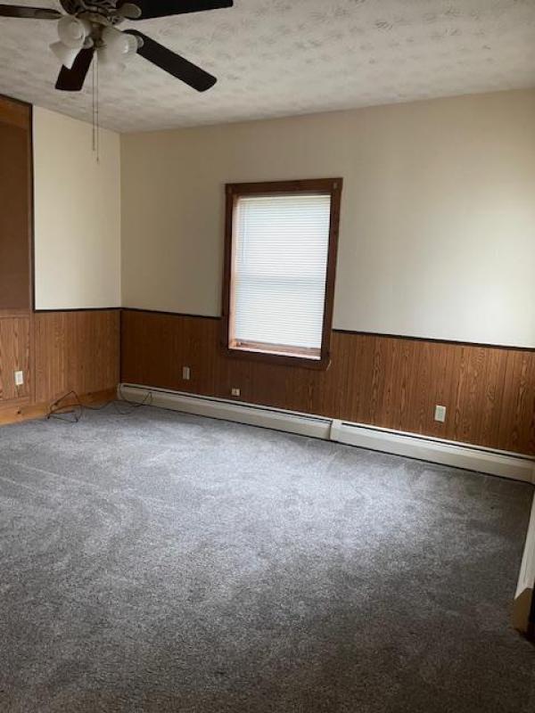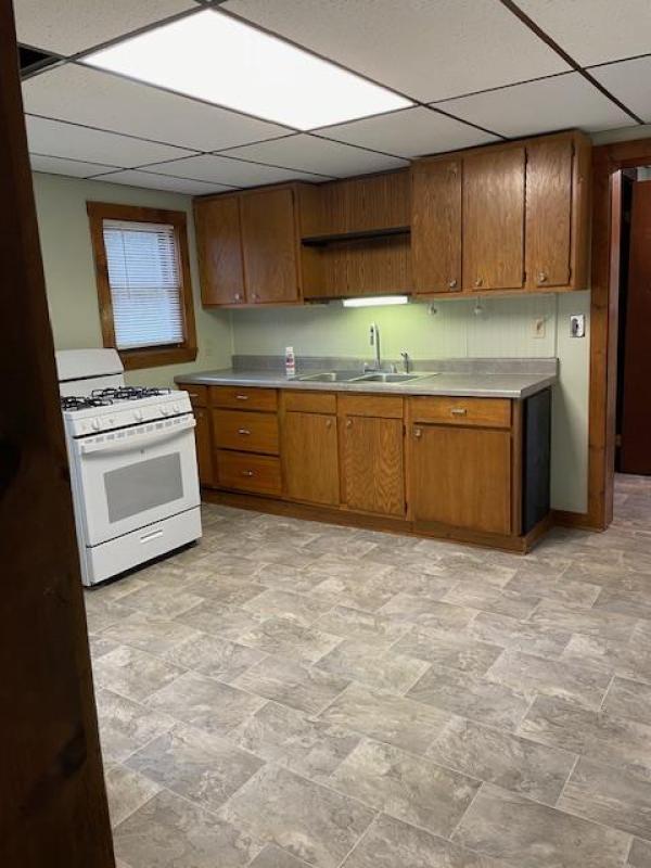 $675 rent includes lawn mowing, gas, electric, water, trash removal, and sewer. Tenant responsible for snow and ice removal on their section of driveway and half of public sidewalk. It is a corner lot. 1 year lease required but after one year it will revert to a month to month lease. Deck on the east side. Storage building in the rear shared with other tenant.